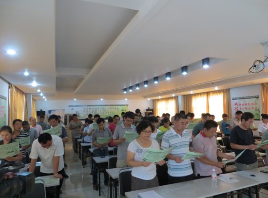 此次道德講堂在形式上依然沿用“5+3模式”,但對主題內(nèi)容進行了創(chuàng)新,由唱《青年志愿者之歌》、看央視“講文明 樹新風(fēng)”公益廣告短片、聽感人故事、誦讀中華經(jīng)典、談文明感悟、送環(huán)保五個固定環(huán)節(jié)和自我文明行為反省、“是否遵循文明禮儀”三問,向文明行鞠躬禮三個自選環(huán)節(jié)組成。