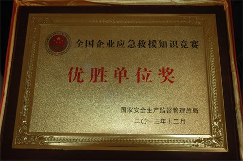榮獲“全國企業(yè)應急救援知識競賽優(yōu)勝單位獎”