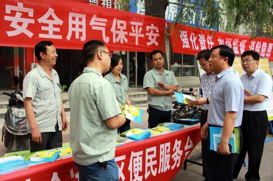 焦作公司訊 2014年6月16日,修武中裕燃?xì)獍l(fā)展有限公司組織員工走上街頭,針對(duì)安全用氣知識(shí)對(duì)廣大居民提供宣傳咨詢服務(wù)。通過設(shè)立宣傳點(diǎn)、懸掛橫幅、擺放展板,向過往群眾發(fā)放宣傳資料,接受用戶用氣安全咨詢等方式加強(qiáng)燃?xì)獍踩麄?。期間,修武縣吳利年副縣長來到宣傳點(diǎn)針對(duì)如何安全用氣進(jìn)行了詳細(xì)的咨詢和提問,對(duì)工作人員的回答予以了高度評(píng)價(jià),同時(shí)提出了盡快推行居民灶具管道硬連接以杜絕安全隱患等要求?;顒?dòng)為廣大市民進(jìn)一步了解了如何安全使用燃?xì)饧叭細(xì)庑孤逗笕绾翁幹玫劝踩WR(shí)、提高燃?xì)馐褂冒踩庾R(shí)和操作技能提供了幫助。