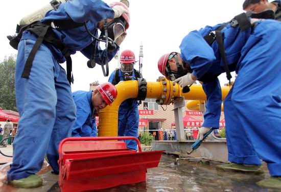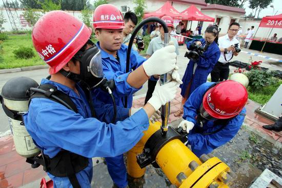 20日上午9:30,焦作公司博愛首站當班巡檢人員發(fā)現(xiàn)工藝區(qū)Ф219燃氣管道燃氣泄漏,立即向首站當班站長報告。當班站長接到報告后立即前往現(xiàn)場察看,確定燃氣泄漏后立即向部門領導報告。天然氣輸配部部長高東林接到報警后,立即下達搶險指令,啟動應急程序,公司應急搶險隊迅速趕往現(xiàn)場救援。相關站場接到通知后立即做好降壓運行。博愛縣政府接到報警后,立即啟動博愛縣應急救援預案,縣應急辦、安監(jiān)、公安、消防、衛(wèi)生、環(huán)保等部門相繼到達事故現(xiàn)場,消防人員立即對燃氣泄漏管道噴射消防水,避免險情擴大。縣安監(jiān)局聯(lián)系專家組人員趕到現(xiàn)場,迅速了解事故情況,共同制定救援方案,最后決定采用打卡注膠的方式處理漏氣,經過近20分鐘的緊張救援,搶險人員成功將險情排除,燃氣管道泄漏事故得到了及時有效的控制,用氣恢復正常。