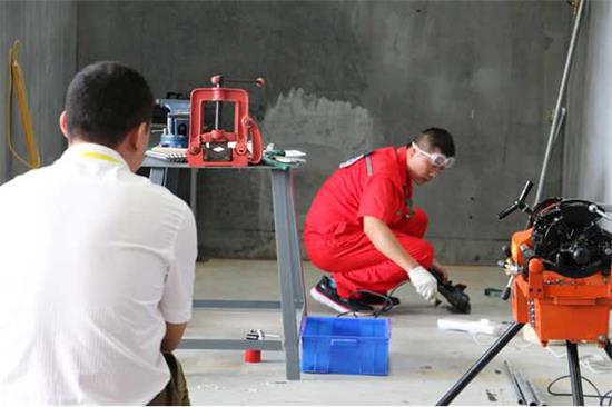 期間,來自全省17個(gè)地市的68名參賽選手分調(diào)壓工、安裝維修工2個(gè)賽項(xiàng)進(jìn)行了角逐,考核成績(jī)由理論和實(shí)踐兩部分組成。調(diào)壓工實(shí)操要求參賽選手在70分鐘的限時(shí)內(nèi)對(duì)整臺(tái)調(diào)壓器進(jìn)行檢查,并完成對(duì)主調(diào)器切斷閥的拆裝保養(yǎng)維護(hù)及組裝調(diào)試、工作原理圖繪制等操作;安裝維修工實(shí)操要求參賽選手在100分鐘的限時(shí)內(nèi)按照給定的墻面圖,設(shè)計(jì)燃?xì)夤艿腊惭b圖,提出材料表,完成管道下料組裝、壓力試驗(yàn)等操作。
