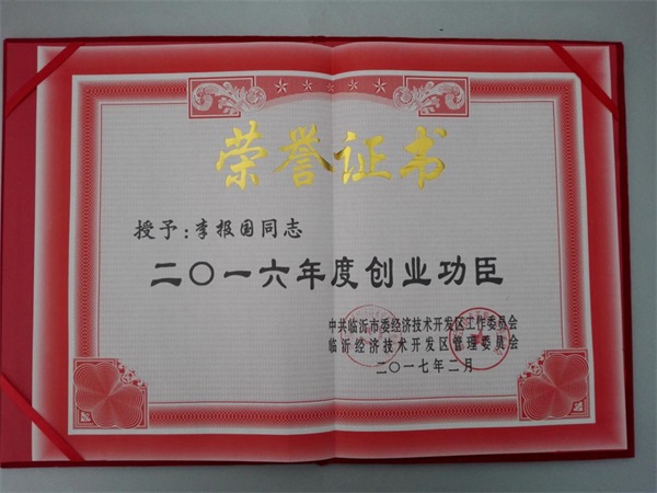 大會回顧了開發(fā)區(qū)2016年的整體工作開展情況,部署了2017年的重點(diǎn)工作,并對為開發(fā)區(qū)建設(shè)做出突出貢獻(xiàn)的先進(jìn)集體和個人進(jìn)行了表彰。臨沂中裕能源獲授2016年度“功勛企業(yè)”榮譽(yù)稱號,董事長李報(bào)國先生獲授“創(chuàng)業(yè)功臣”榮譽(yù)稱號。